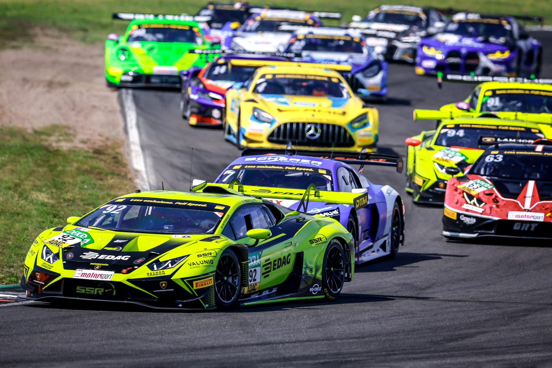 Sportlich ist die DTM-Saison 2023 ein echter Knüller. In den ersten zwölf Saisonrennen ließen sich nicht weniger als zehn verschiedene Sieger aller vertretenen Marken feiern. Lediglich der Italiener Mirko Bortolotti im Lamborghini Huracán GT3 Evo2 von SSR Performance stand bereits dreimal ganz oben auf dem Siegertreppchen. Folgerichtig führt der 33-jährige Wahl-Wiener die DTM-Zwischenwertung zwei Veranstaltungen vor Schluss an. Neun Punkte Vorsprung auf den österreichischen Norisring-Gewinner Thomas Preining (25, Linz) im Porsche 911 GT3-R von Manthey EMA Racing sind indes alles andere als ein beruhigendes Polster. Die übrigen Laufsiege sicherten sich die Lamborghini-Asse Franck Perera (Frankreich) und Maximilian Paul (Deutschland), Ricardo Feller (Schweiz, Audi R8 LMS GT3), Jack Aitken (Großbritannien, Ferrari 296 GT3), Maro Engel und Luca Stolz (beide Deutschland, beide Mercedes-AMG GT3), Christian Engelhart (Deutschland, Porsche 911 GT3-R) sowie Titelverteidiger Sheldon van der Linde (Südafrika, BMW M4 GT3).
