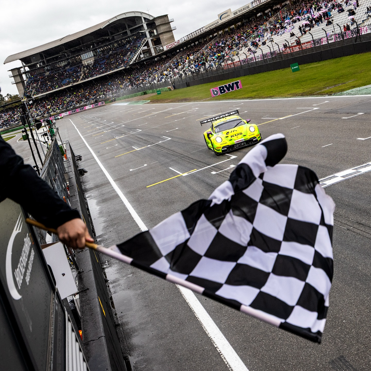 Hockenheim. DTM-Wahnsinn im Regen von Hockenheim: Thomas Preining (A/Manthey EMA) gewann am Samstag den vorletzten Meisterschaftslauf mit einem Vorsprung von fast 17 Sekunden. Damit katapultierte sich der Porsche-Fahrer vom achten auf den zweiten Tabellenplatz und hat am Sonntag gute Chancen, nach 2023 erneut DTM-Champion zu werden. „Ein super Tag für uns! Durch den Sieg bin ich im Titelkampf wieder voll dabei, genau auf diese Ausgangslage haben wir hingearbeitet. Der Job ist aber noch nicht erledigt. Wir wollen Meister werden und brauchen am Sonntag ein weiteres Top-Ergebnis“, erklärte Preining, der Manthey EMA damit den vorzeitigen Gewinn der Teamwertung bescherte. Platz zwei ging an Ricardo Feller (CH/Land-Motorsport) im Audi R8 LMS GT3 Evo2. Rookie Morris Schuring (NL/Manthey Junior Team) stand als Dritter zum ersten Mal in seiner DTM-Karriere auf dem Treppchen. Tabellenführer Lucas Auer (A/Mercedes-AMG Team Landgraf) betrieb Schadensbegrenzung. Der Österreicher machte fünf Plätze gut und verteidigte als Zwölfter mit 175 Punkten die Führung vor Preining (172 Zähler). Damit verspricht das Rennen am Sonntag einen ultimativen Showdown: Acht Fahrer haben noch die Chance auf die Meistertrophäe.