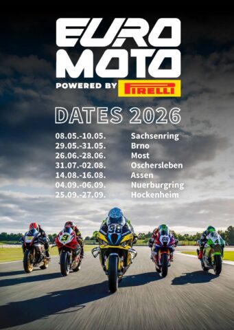 The 2026 calendar for EURO MOTO and the parallel IDM season features seven race weekends at renowned circuits including the Sachsenring (GER), Oschersleben (GER), Assen (NL), Most (CZ), Nürburgring (GER) and Hockenheimring (GER). Newly added to the schedule is the legendary World Championship circuit in Brno (CZ). The Schleizer Dreieck will no longer be part of the series, as the natural road circuit currently does not hold international FIM homologation, meaning it has not been officially certified to meet the safety and regulatory standards required for international competition. The Superbike regulations will remain largely unchanged, with selective refinements. The Supersport and Sportbike classes will be aligned more closely with World Championship regulations.