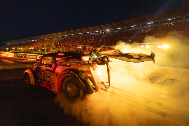 Das Dragster-Rennen „NitrOlympX“ ist inzwischen eine absolute Kultveranstaltung. Alles ist schneller, gefährlicher, lauter und eine Spur verrückter. Die hochexplosive Mischung aus Sport, Geschwindigkeit und Show lockt die Fans an die „Rico Anthes Quartermile“, denn hier erleben Sie 100 % High Speed, Action und die Faszination der Beschleunigung auf höchstem Niveau.